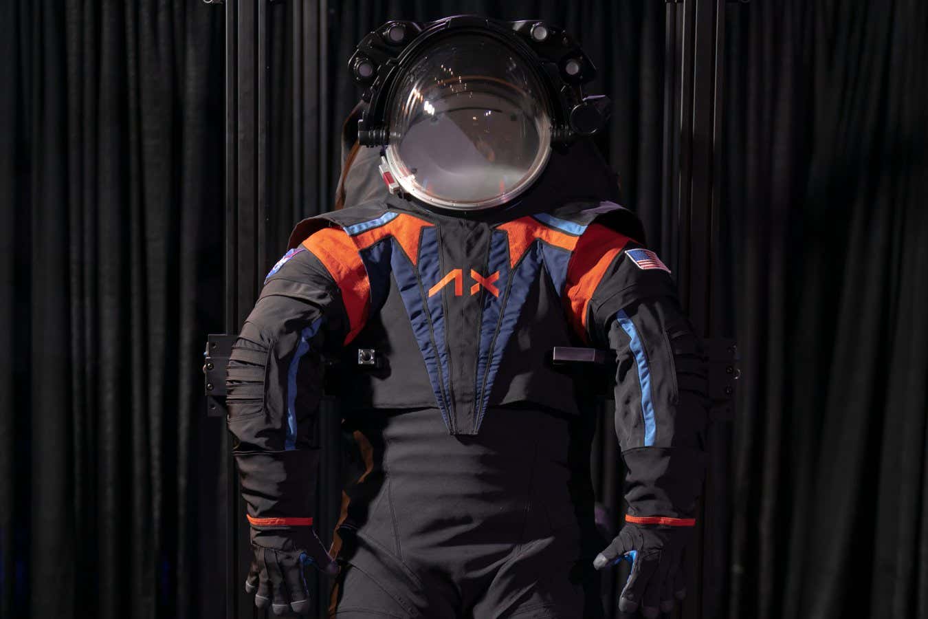 A spacesuit designed for the Artemis moon missions is much lighter than those worn by the Apollo astronauts, and allows a greater range of motion
